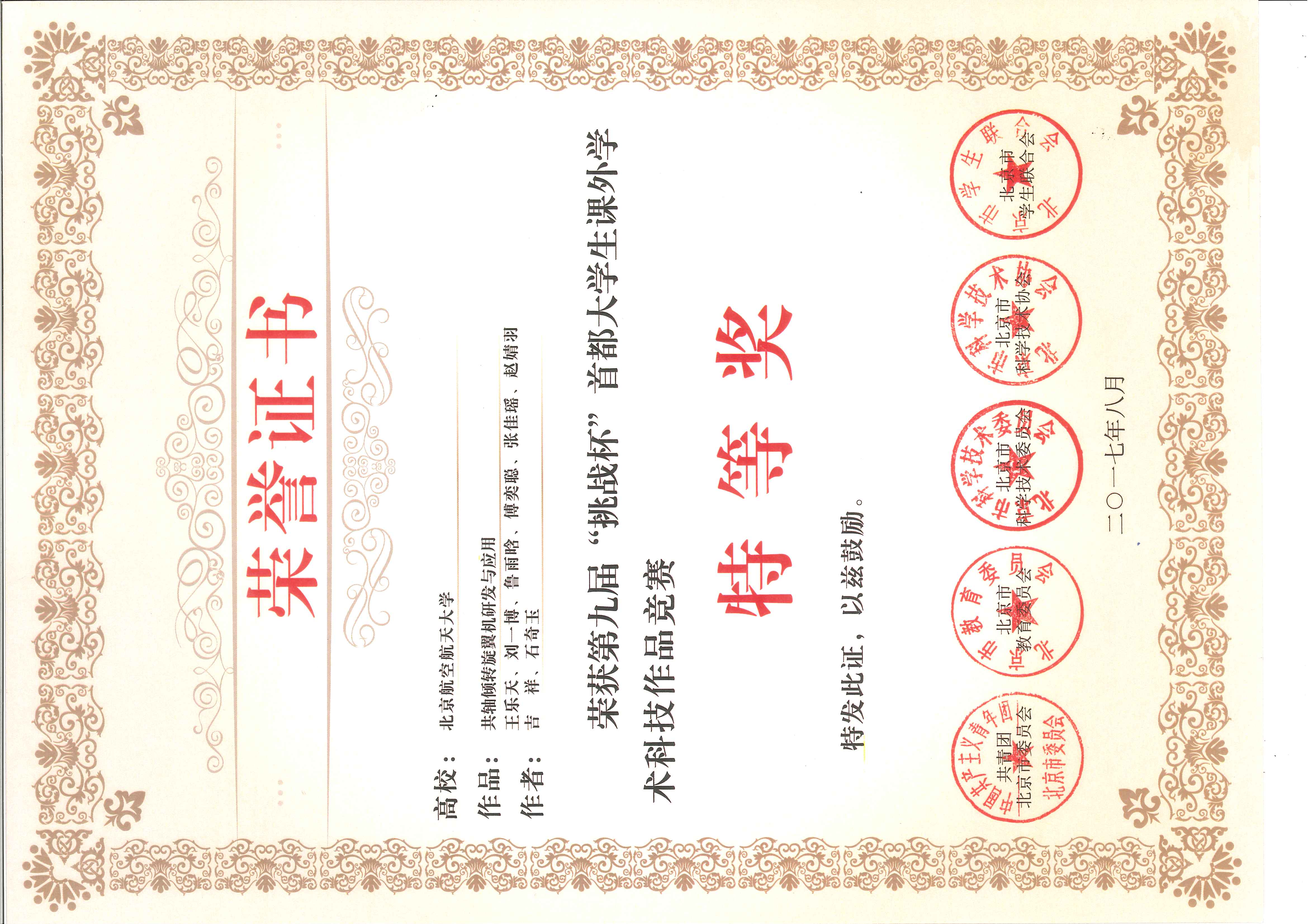 First prize in National Challenge Cup 2017 (全国挑战杯一等奖, known as the Sci./Tech. Olympics among universities in China).