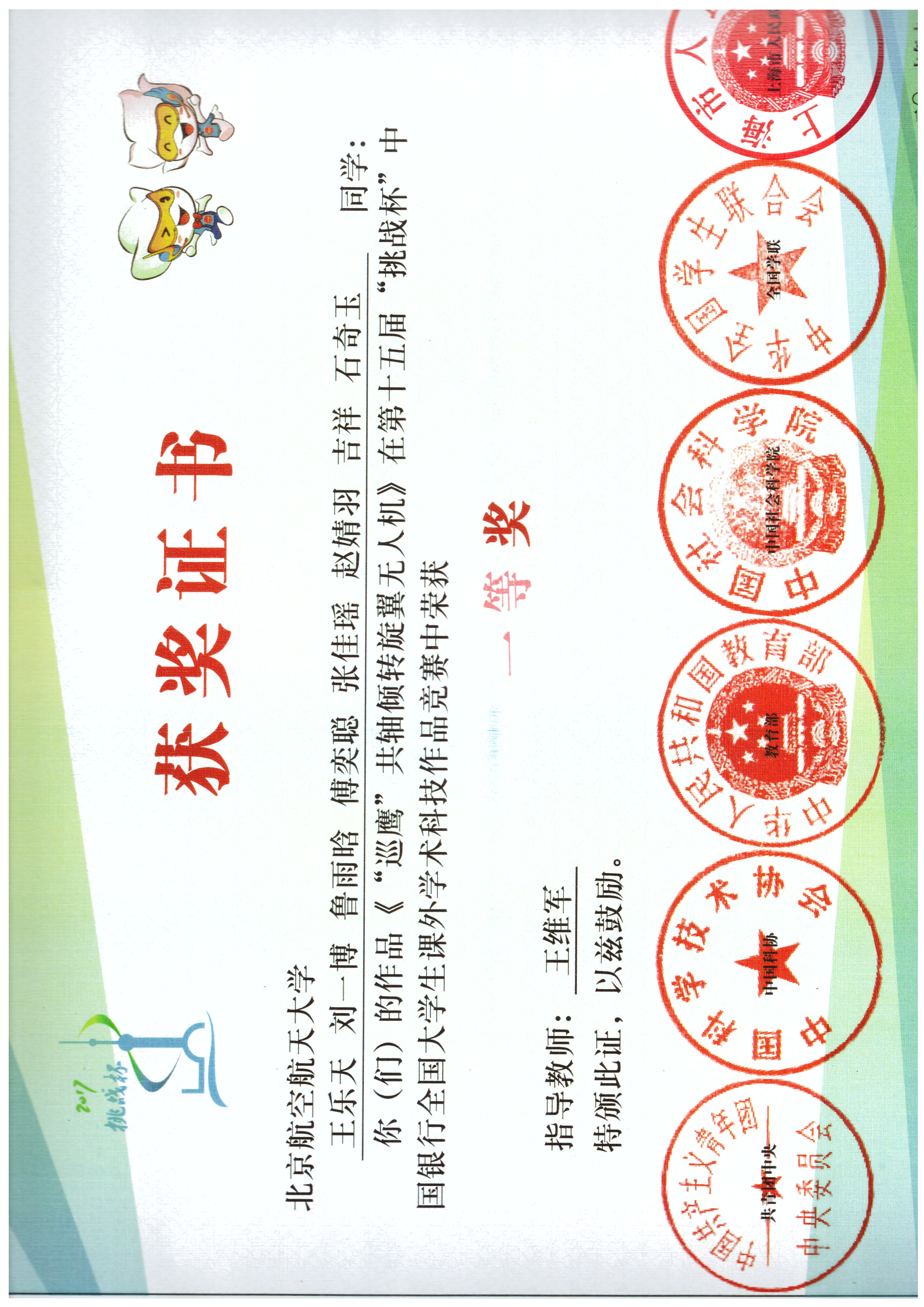 May-Fourth Medal, highest honor for undergraduate at Beihang university, 10 people each year2017